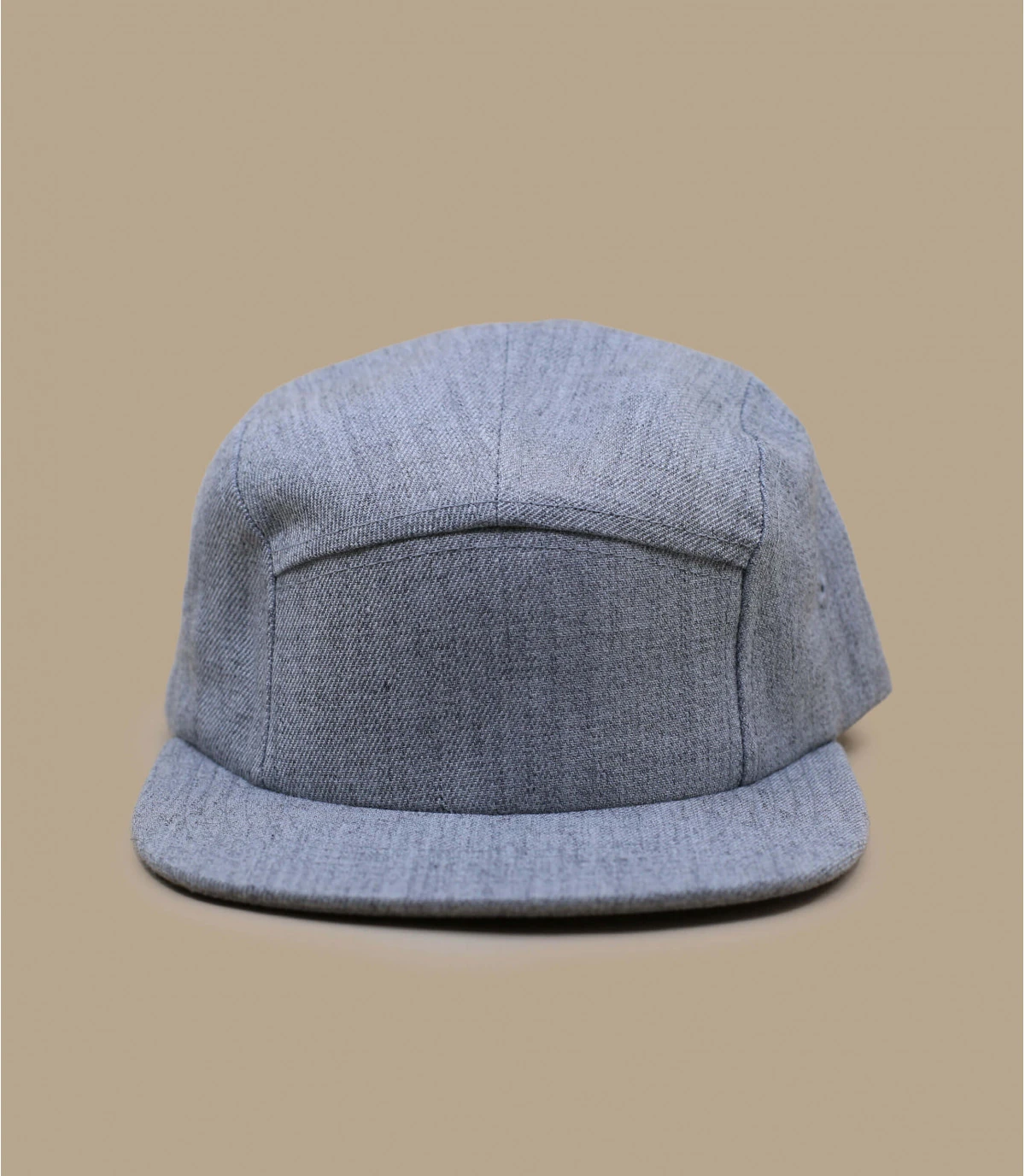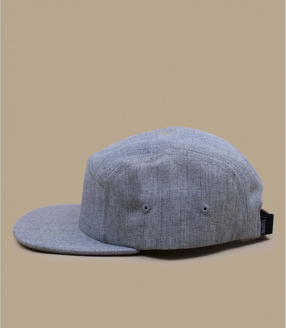 5 Panel gris heather. Attache réglable avec clip à l’arrière. Tour de tête 55-60 cm.
