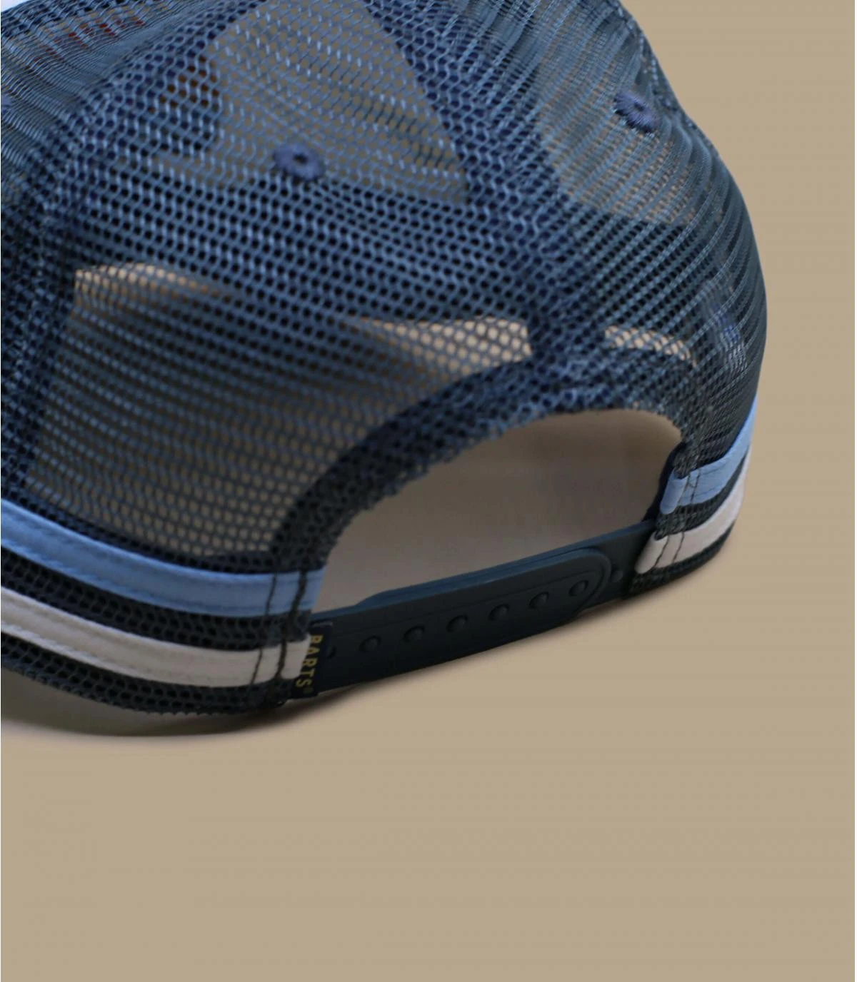 La tête de votre bambin restera toujours au frais grâce à cette trucker, qui fait rêver avec son dessin de coucher de soleil ! Sa visière et son filet arrière sont bleu marine. Elle est ajustable à l’arrière.