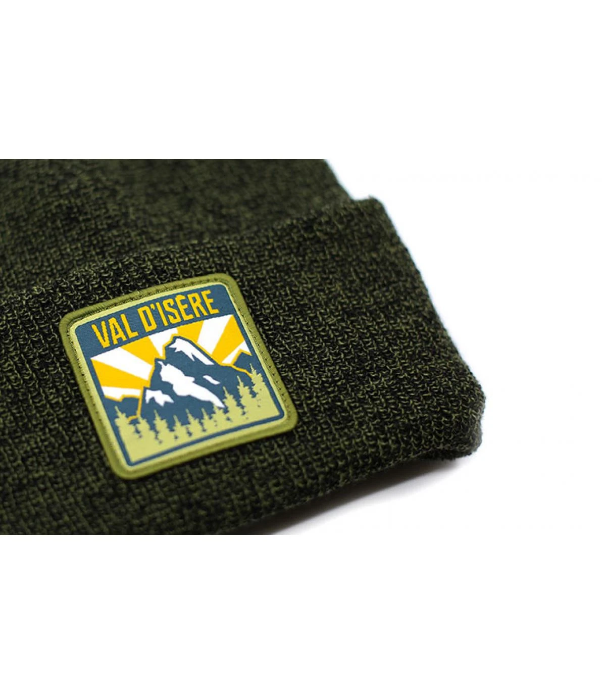 Val-d’Isère, c’est souvent un coup de foudre pour ceux qui découvrent son domaine immense et ses soirées endiablées. Retrouvez toute l’année l’esprit de cette belle station, avec ce superbe bonnet vert, brodé sur le revers d’un patch assorti, affichant une vision vintage de la station de montagne.