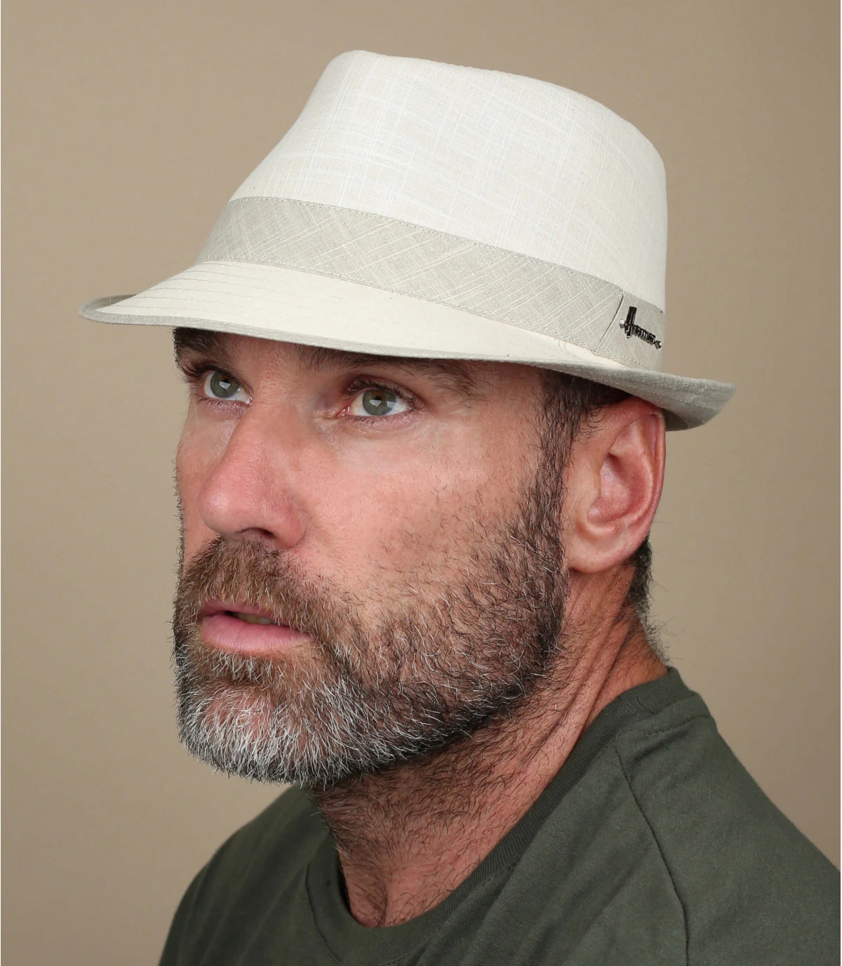 Superbe trilby en coton gris avec un effet bicolore discret très élégant. Relevé d’un large galon ton sur ton, ce modèle confortable à la matière naturelle sera idéal pour la belle saison. Il nous est proposé par la marque spécialisée Herman.