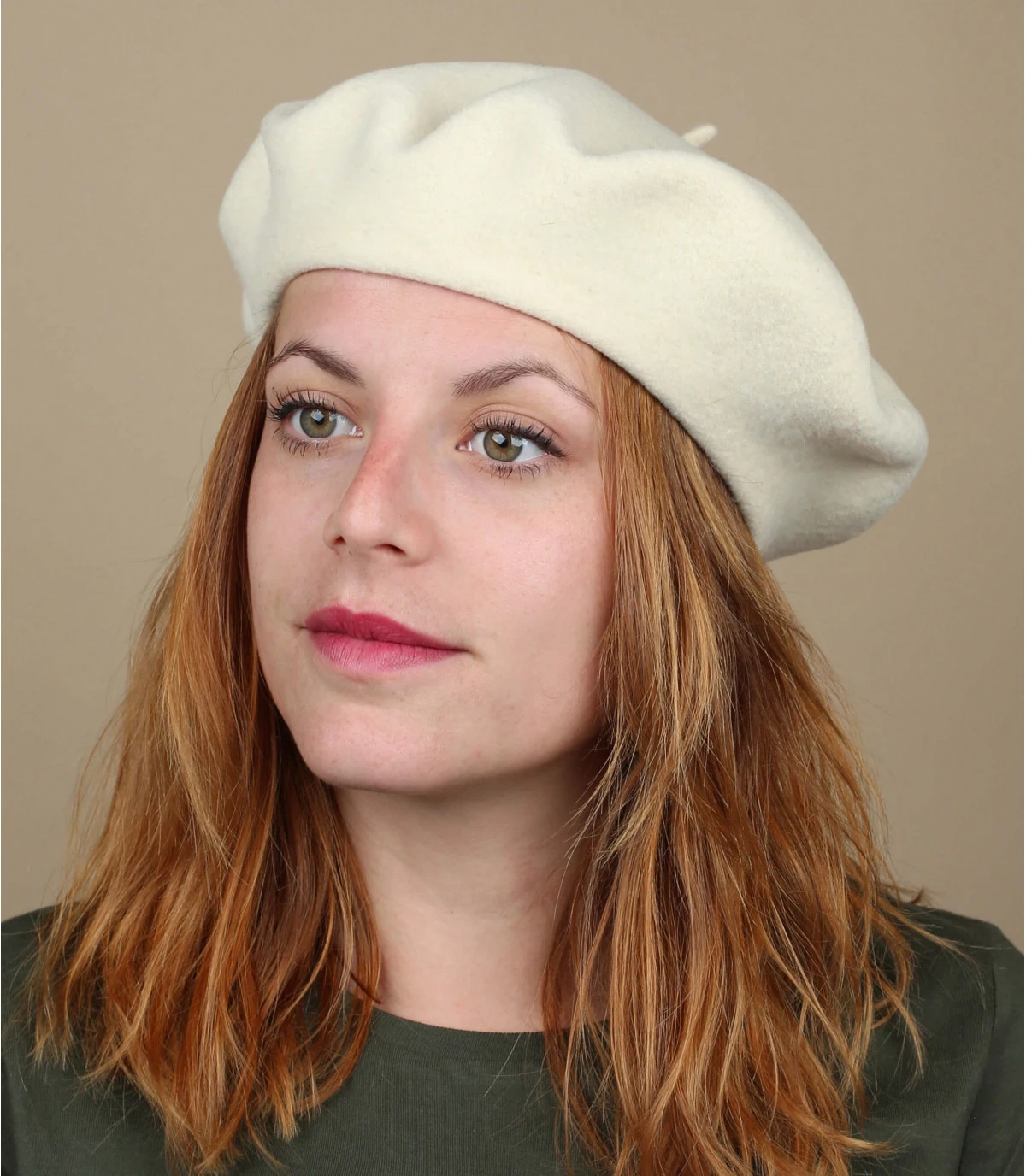 Ayez l’air d’un ange avec la couleur immaculée de ce béret basque et sa forme classique réalisée en laine mérinos dans les Pyrénées par la maison Laulhère.