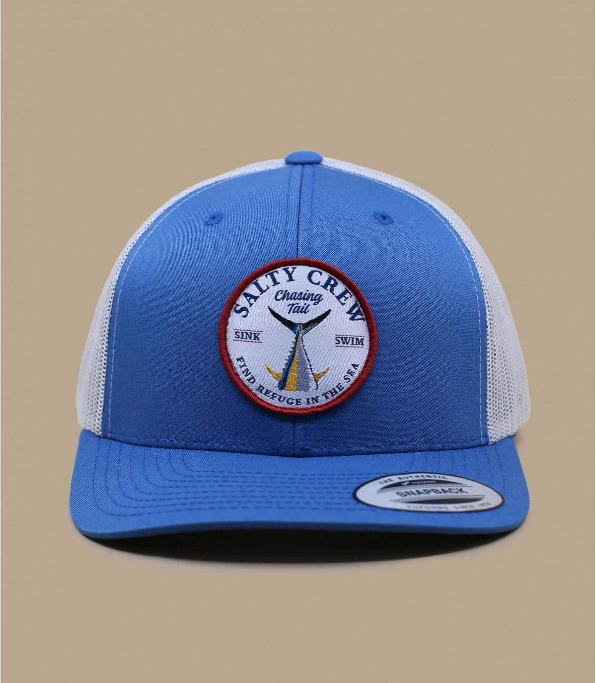 Faites la chasse aux petits poissons qui se cachent au fond de l’océan avec cette trucker fun bleu petrole avec un filet blanc. Elle arbore un patch blanc rond vintage avec Salty Crew et une queue de poisson.