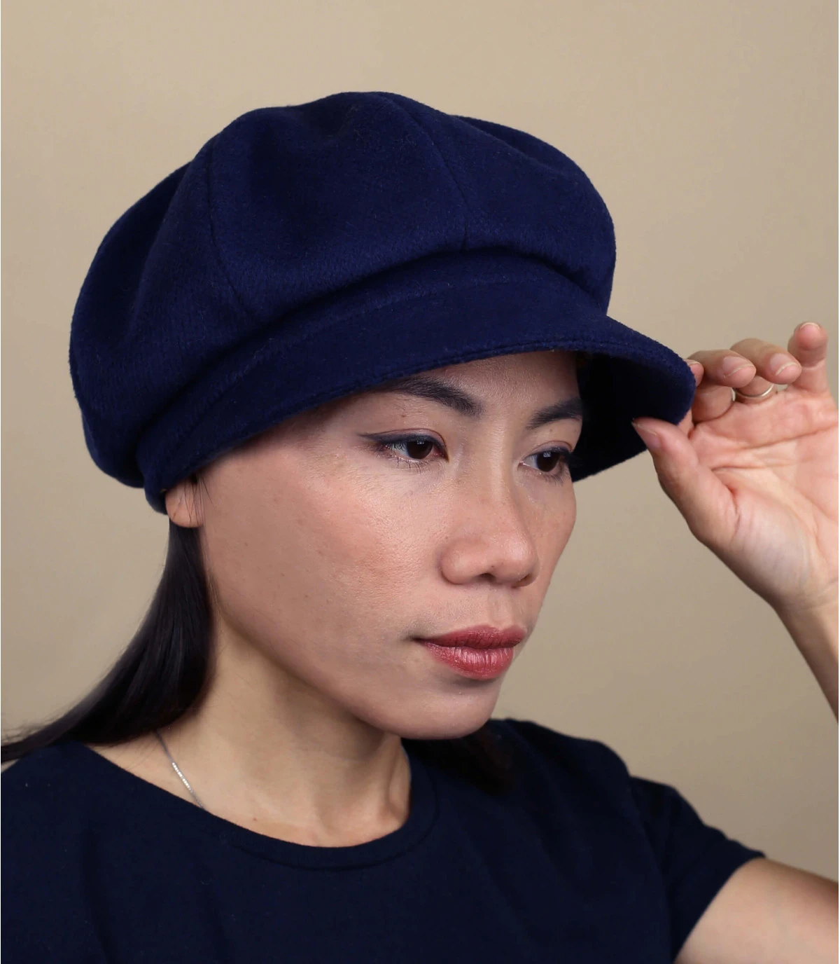 Très féminine, cette casquette gavroche pour femme est de couleur bleu marine. On retrouve un mélange de lainage avec un motif carreaux, et un tissu uni au toucher doux. Elle a une doublure fantaisie.