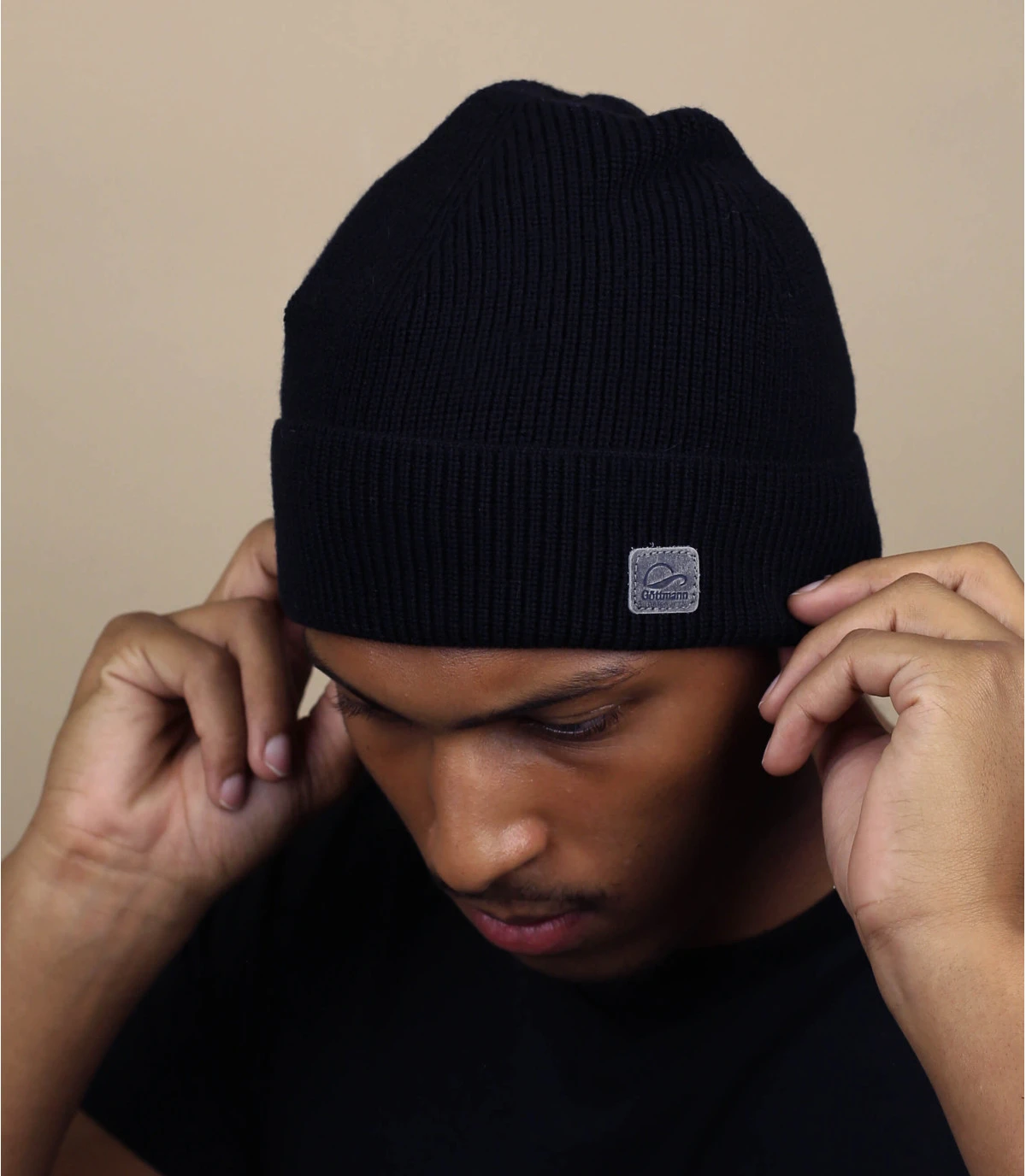 Voici un bonnet noir et tendance en laine que vous allez pouvoir porter toute la saison. Son revers est long et permet de changer de style régulièrement. Un patch Gottmann est visible sur le côté gauche.