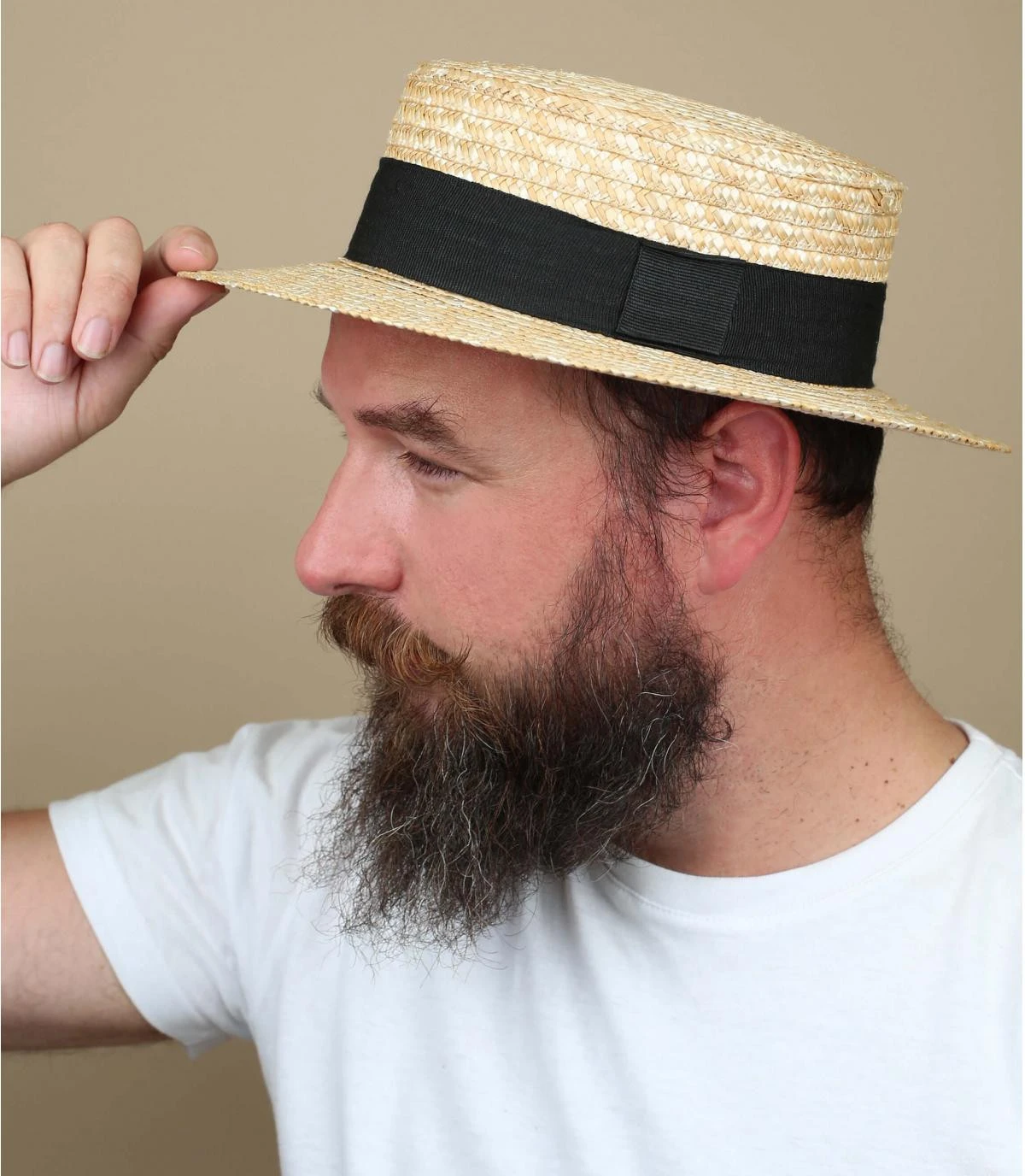 Ce splendide canotier en paille tressée est cousu selon une technique ancienne dans les ateliers de la marque Modissima en Italie. La couleur chaleureuse de la matiÚre et le large galon noir de ce chapeau lui donnent une élégance décontractée.